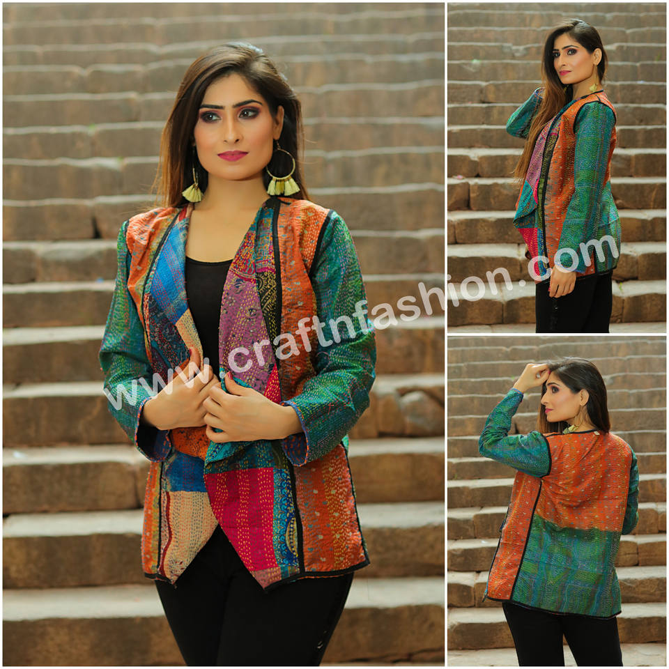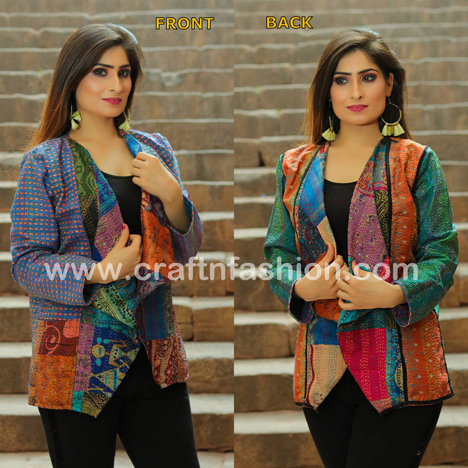 Kantha Shrug งานเย็บปะผ้าไหม,เสื้อแฟชั่น Kantha Shrug ย้อนกลับได้-เสื้อยักยิปซีสไตล์อินเดีย-เสื้อกั๊ก-แจ็คเก็ต Kantha