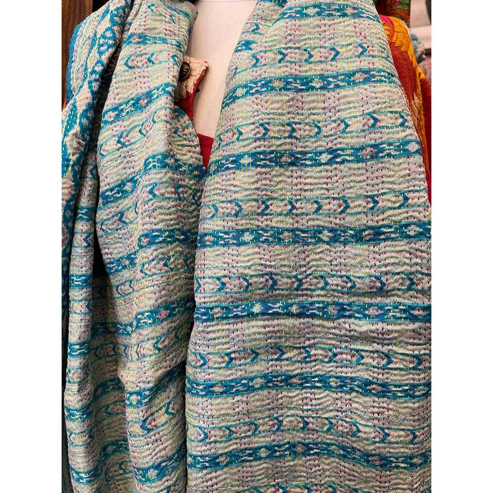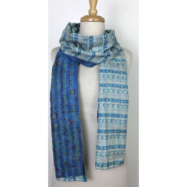 ผ้าพันคอไหมแท้ 100% ลายคันธาสำหรับผู้หญิง ขนาด 50x200 ซม. ใช้งานได้หลากหลายสำหรับฤดูใบไม้ผลิ ลาย 'Linear Sea'