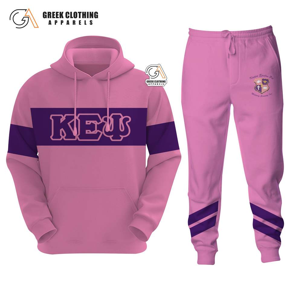 ชุดวอร์มผ้าฟลีซปักลายตัวอักษรกรีก Kapa Epsilon Psi สีน้ำเงินขาว 2 ชิ้น เสื้อฮู้ดดี้และกางเกงจ็อกเกอร์ สำหรับผู้หญิง ชุดออกกำลังกาย ชุดลำลอง