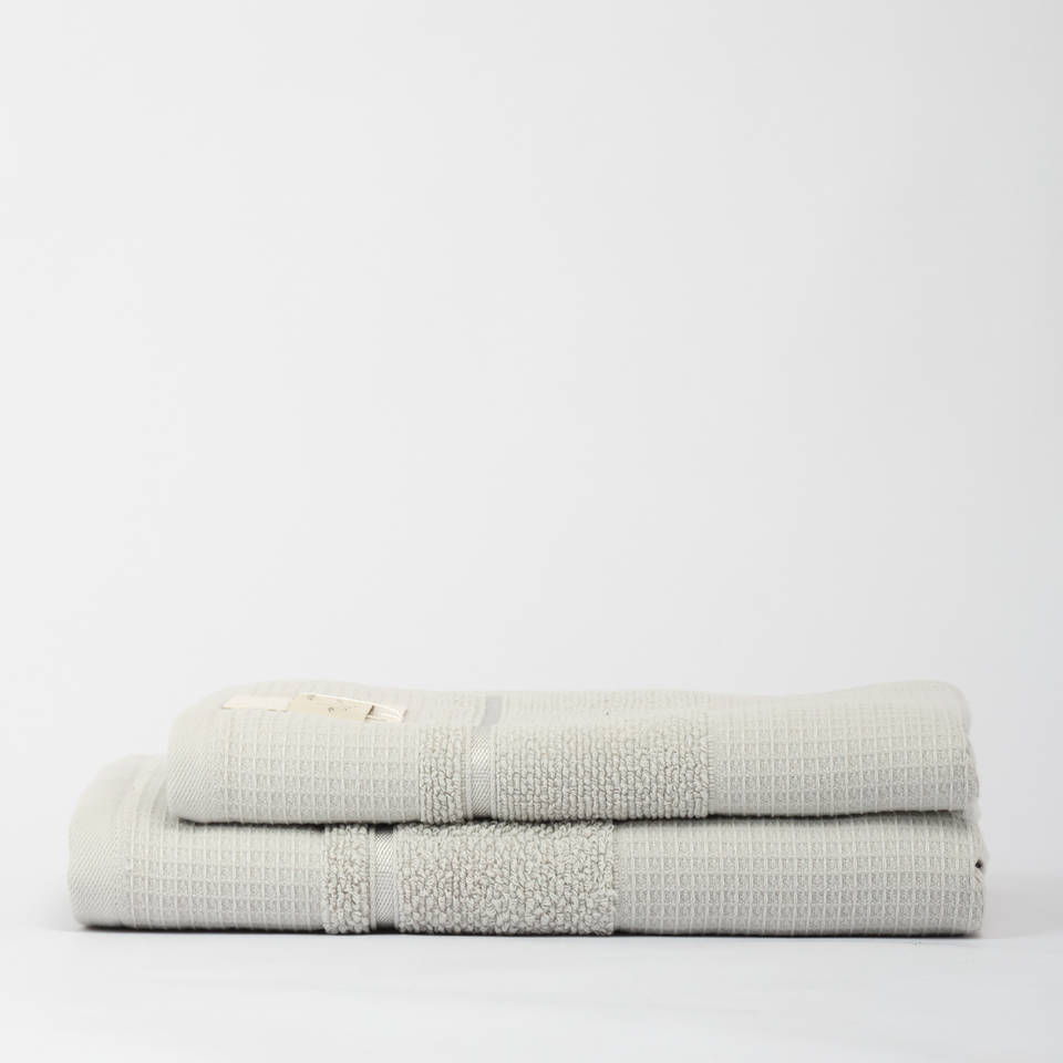 ชุดผ้าเช็ดหน้าและผ้าเช็ดตัวเคเปอร์ส 2 ชิ้น ดีไซน์น้ำหนักเบา ผสมผสานเนื้อผ้าลายวาฟเฟิลและผ้าเทอร์รี่ สัมผัสนุ่ม