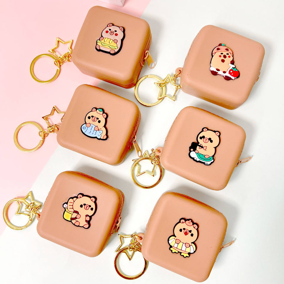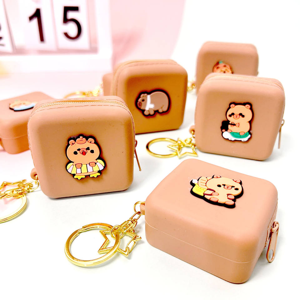 Kapibara กระเป๋าลิปสติกซิลิโคนลายการ์ตูนสำหรับเด็กผู้หญิงกระเป๋าใส่เหรียญพวงกุญแจของขวัญ