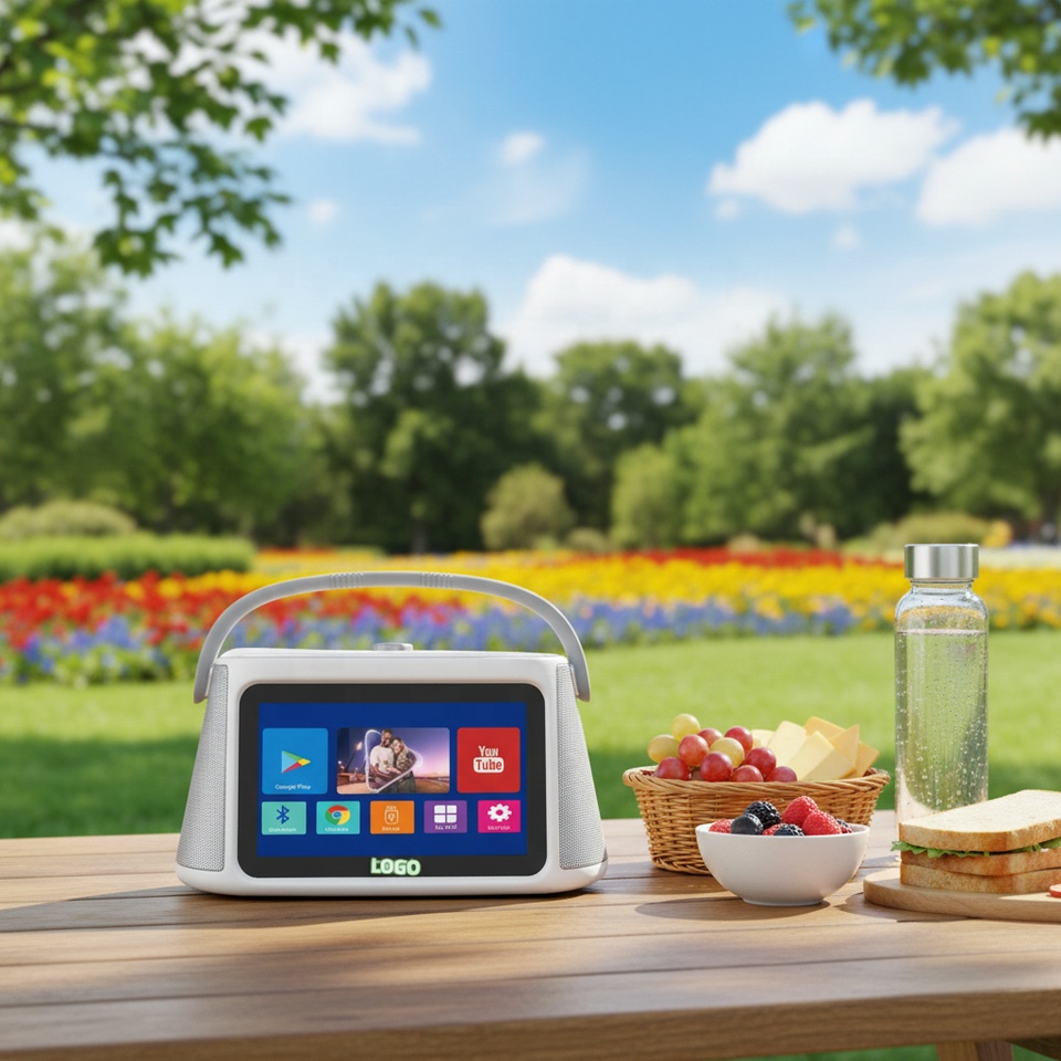 เครื่องคาราโอเกะแบบพกพา ลำโพงปาร์ตี้ขนาดเล็ก 30 วัตต์ ระบบวิดีโอ 2* วูฟเฟอร์ 4 นิ้ว และทวีตเตอร์ ระบบแอนดรอยด์ 12 พร้อม WiFi รองรับ Youtube และ Spotify
