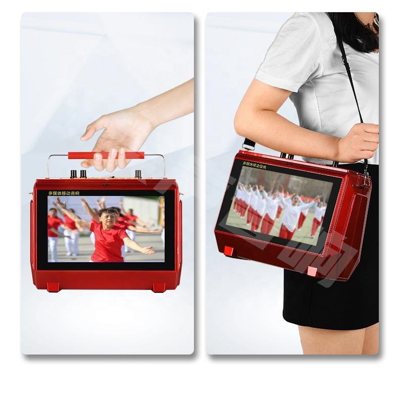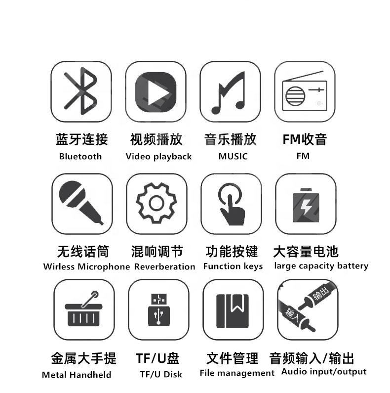 เครื่องคาราโอเกะพร้อมหน้าจอแสดงเนื้อเพลง ลำโพงบลูทูธแบบพกพาพร้อมไมโครโฟนแบบชาร์จไฟได้ 2 ตัว ลำโพงวิดีโอทีวีกลางแจ้ง 20 วัตต์