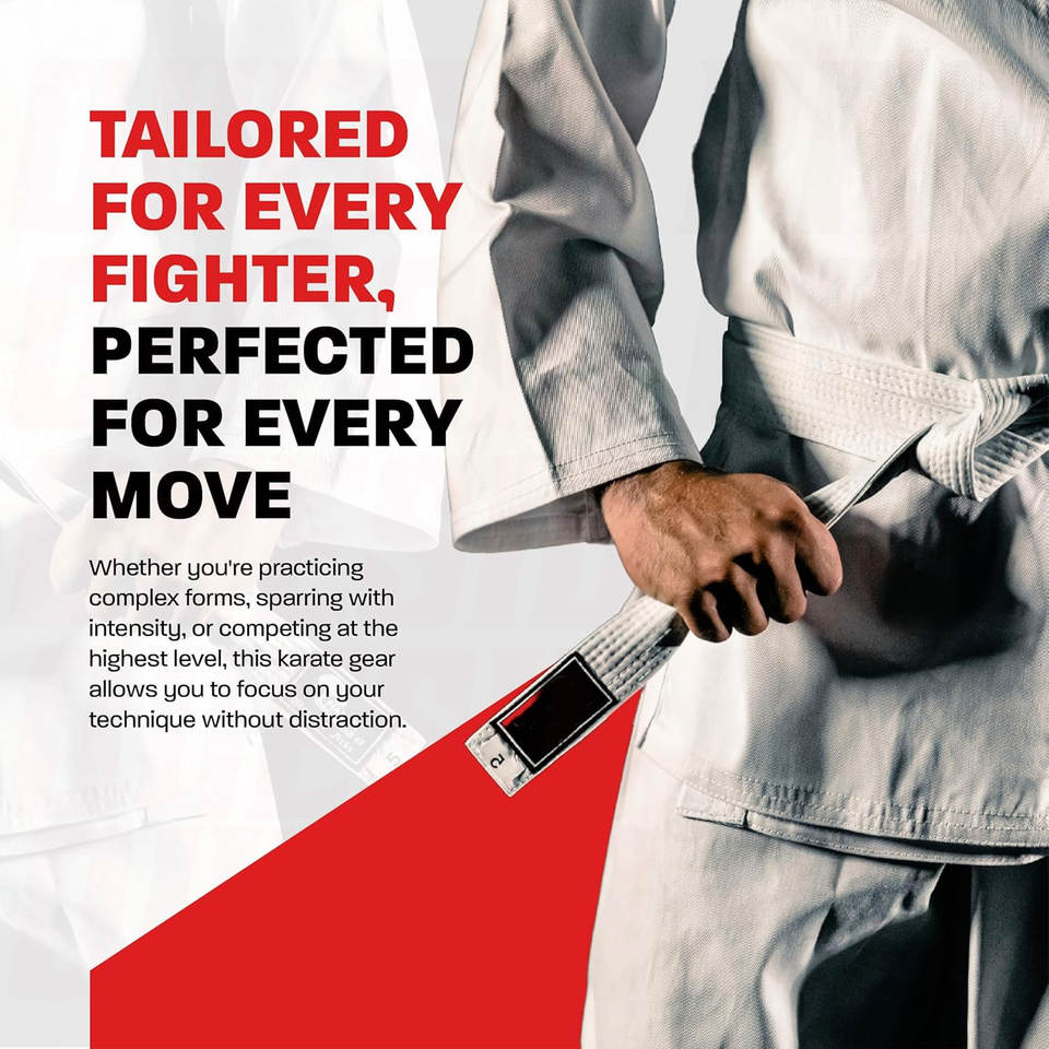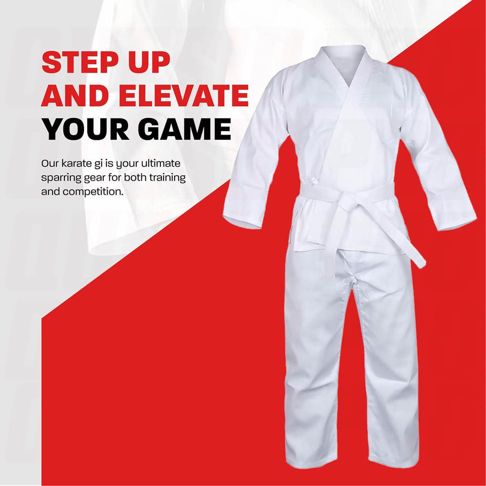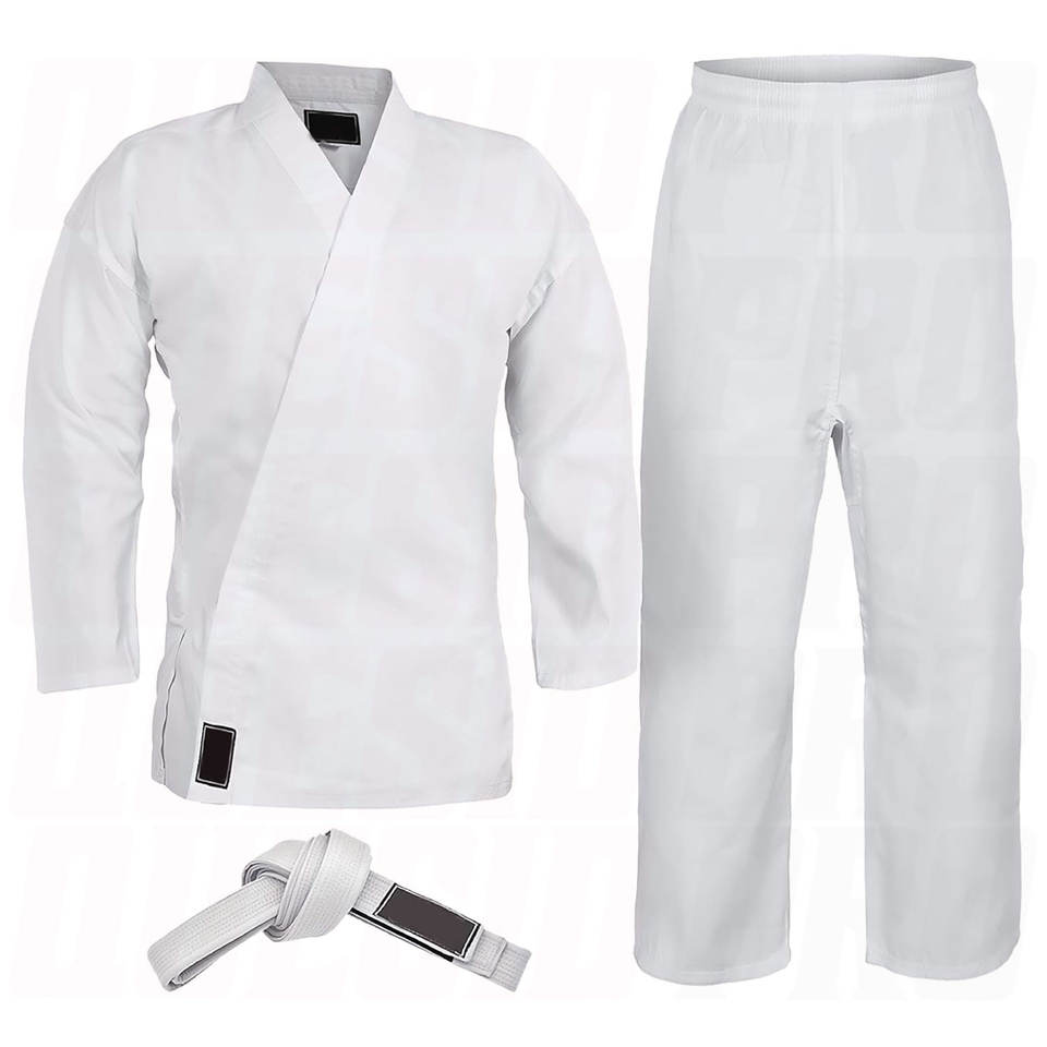 ชุดคาราเต้เด็กและผู้ใหญ่ น้ำหนักเบา ชุดคาราเต้สำหรับนักเรียน ชุดฝึกศิลปะการต่อสู้ พร้อมเข็มขัดสีขาว สำหรับผู้เริ่มต้นฝึกซ้อม
