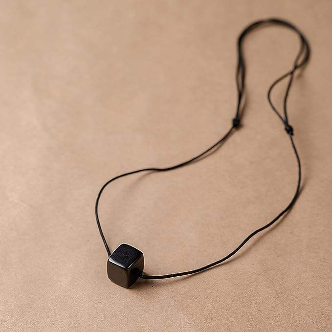 สร้อยคอลูกปัดทรงลูกบาศก์ shungite แบบเรียบง่าย