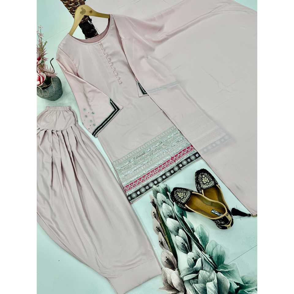 Karma Fashion Fancy Women's Pink Top Pant Dupatta Set with Embroidered Sequence Work Size m