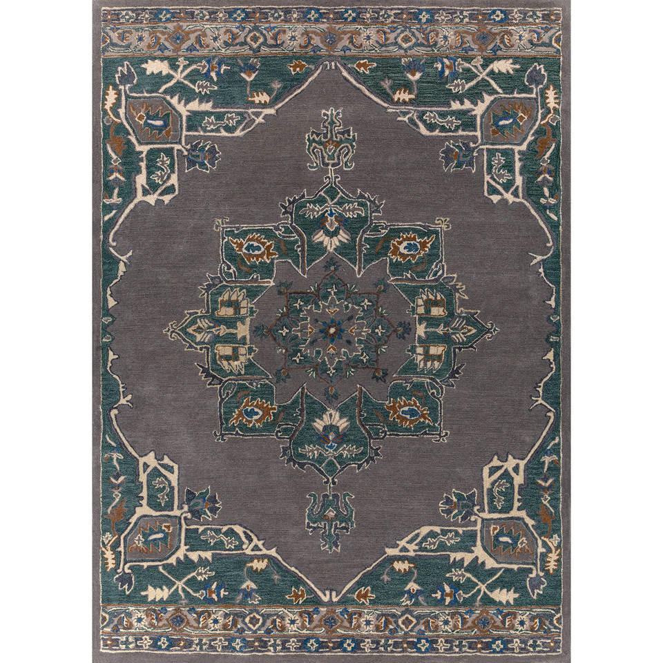 พรมขนสัตว์ทอมือสีเทาดำ Kasbah รุ่น Tra-14487 ลายเมดัลเลียนทอแบบเรียบ พรมปูพื้นห้องนอนรูปสี่เหลี่ยมผืนผ้า พรมปูพื้นห้อง