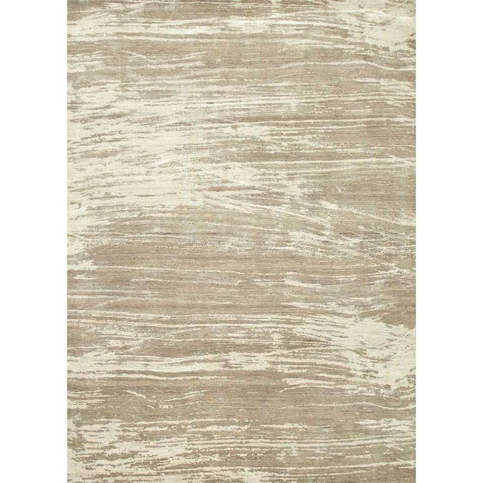 พรมขนสัตว์และไหมไผ่ถักมือสีเบจและสีน้ำตาลลายแบบนามธรรม สำหรับห้องนั่งเล่นวัยรุ่นหรือทางเดิน รุ่น Esk-432