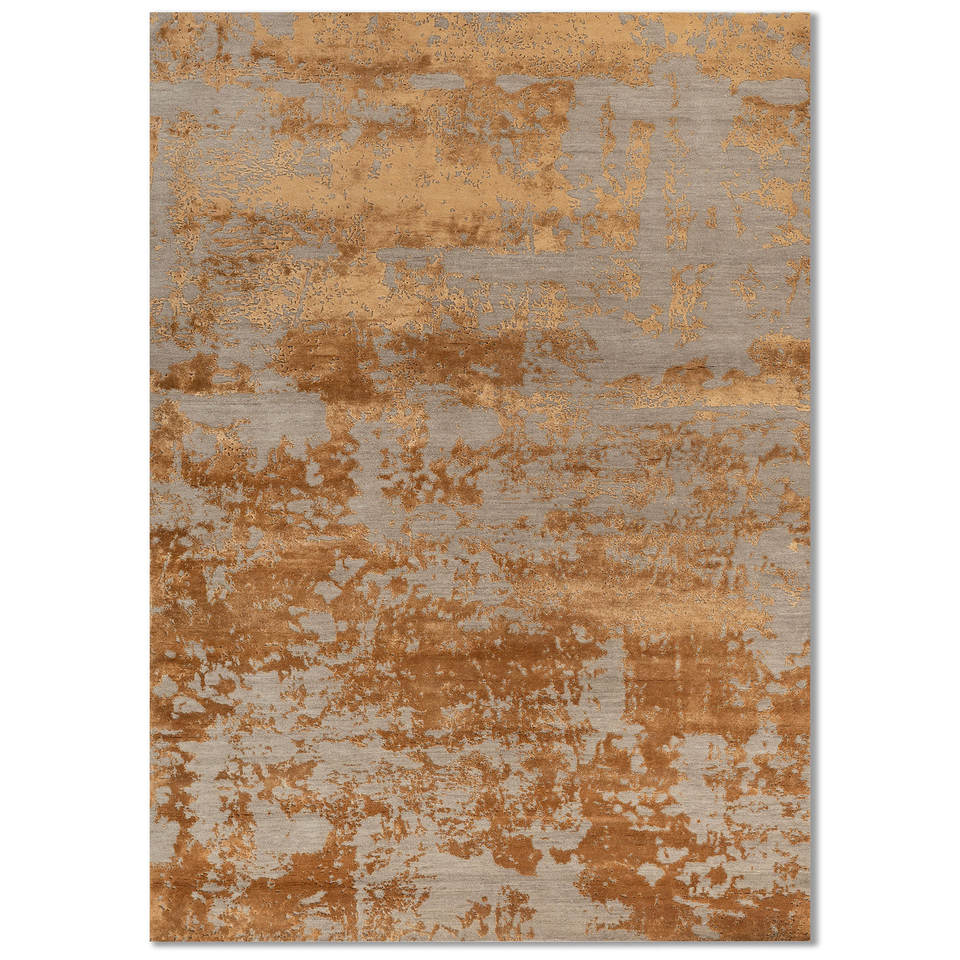 พรมขนสัตว์และไหมไผ่ถักมือสีเบจและสีน้ำตาลลายแบบนามธรรมสำหรับห้องนั่งเล่นวัยรุ่นหรือทางเดิน-Esk-431