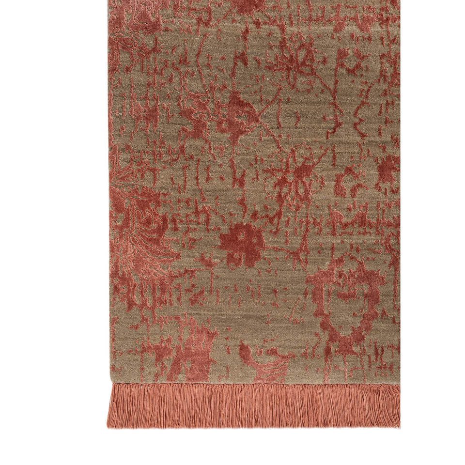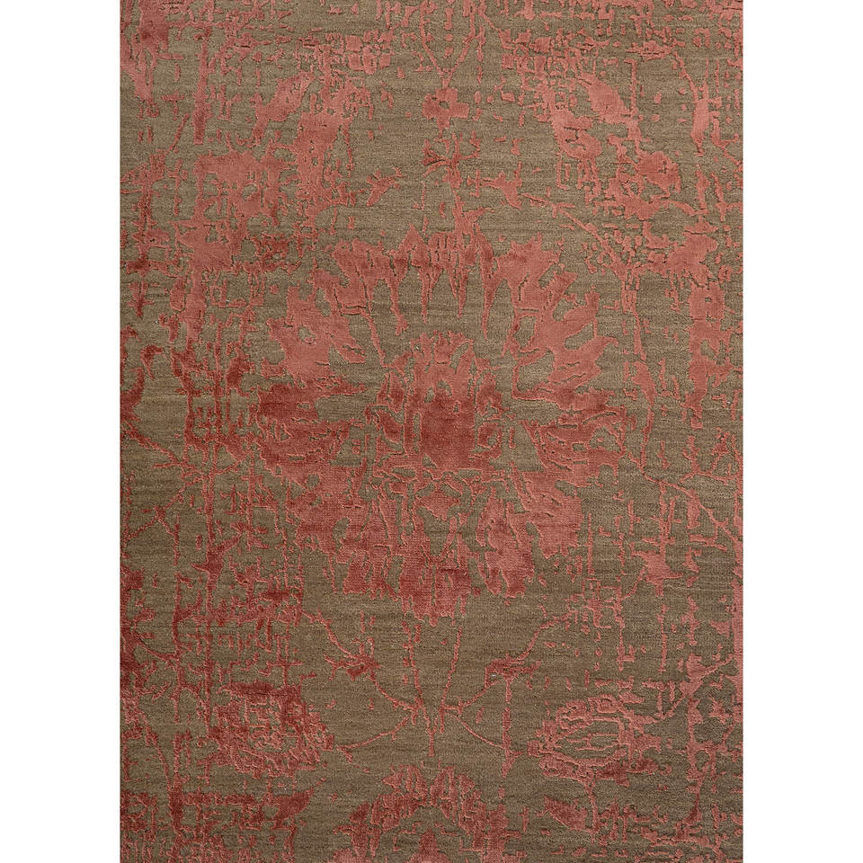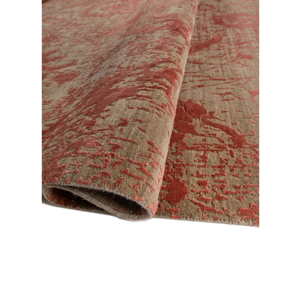 พรมขนสัตว์และไหมไผ่ถักมือสีเบจและสีน้ำตาลลายดอกไม้สำหรับใช้ในบ้าน ห้องนั่งเล่น และทางเดิน-Esk-624(Va)