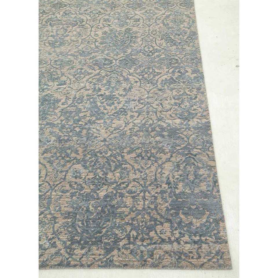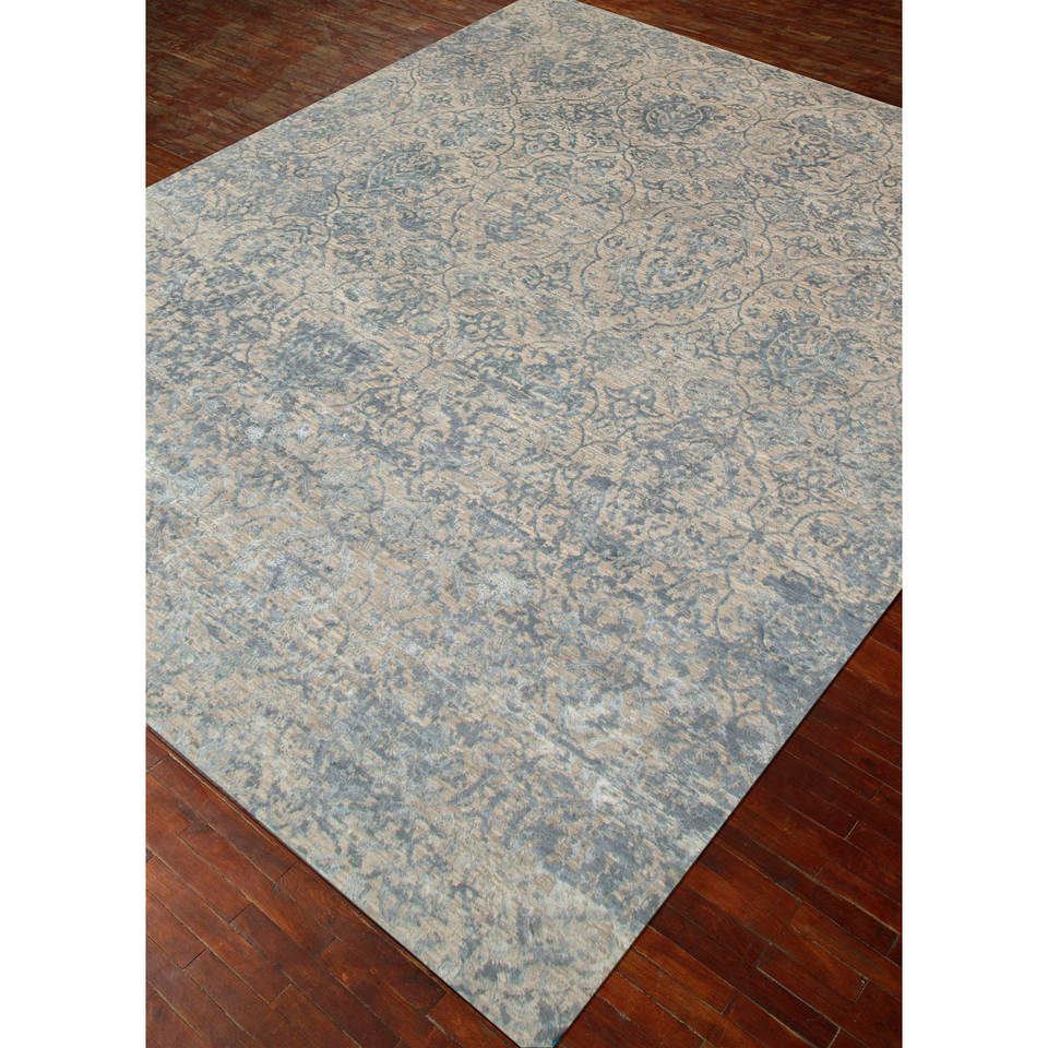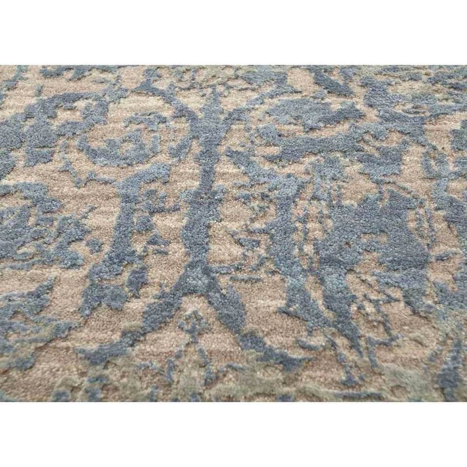 พรมขนสัตว์ผสมไหมไผ่ถักมือสีน้ำตาลเบจลายดอกไม้ สำหรับบ้าน ห้องนั่งเล่น ทางเดิน วัสดุวิสโคส รุ่น Esk-632 Chaos Theory