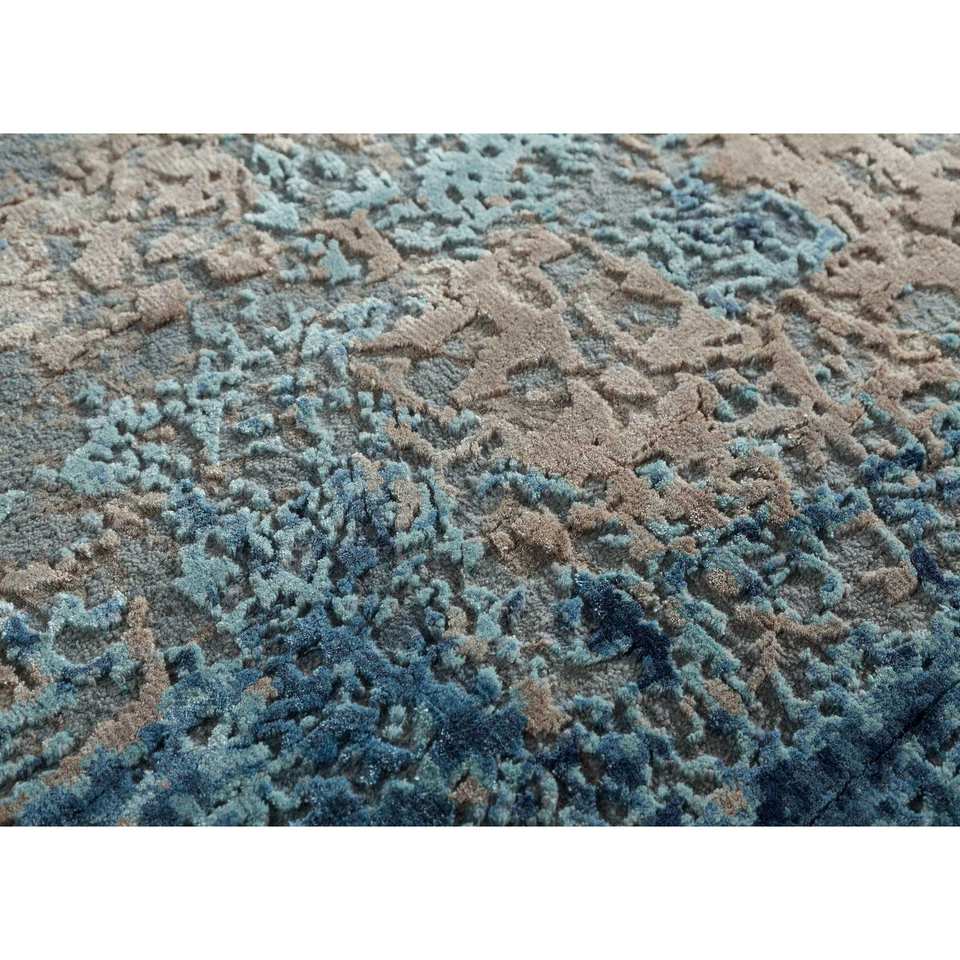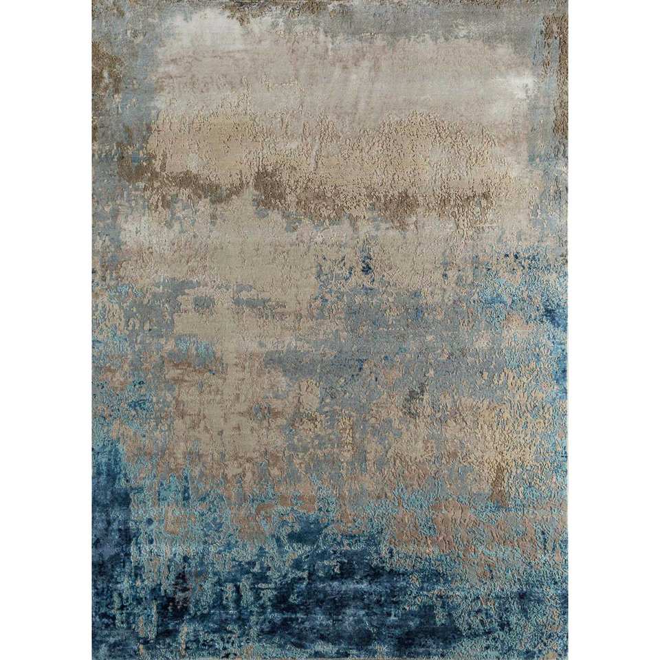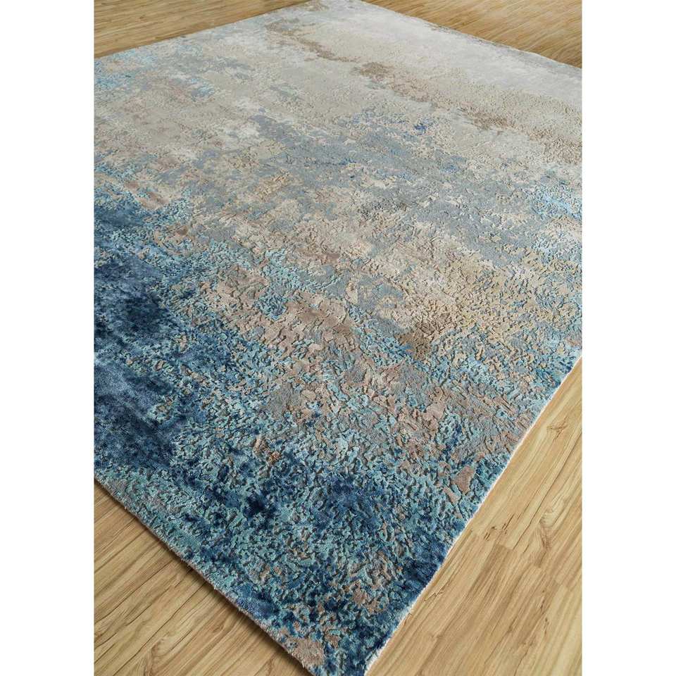 พรมขนสัตว์ผสมไหมไผ่ถักมือสีน้ำเงิน คาวี บลู คอลเลคชั่น Chaos Theory รุ่น Esk-352 ลาย Abstract สำหรับตกแต่งบ้าน ห้องนั่งเล่น รูปทรงสี่เหลี่ยมผืนผ้า เหมาะสำหรับห้องโถง