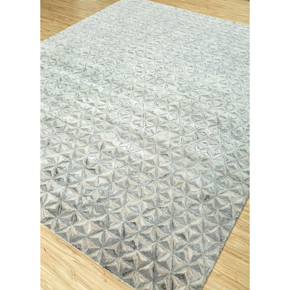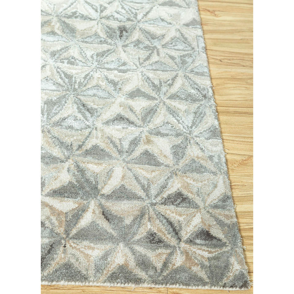 พรมขนสัตว์ผสมไหมไผ่ถักมือสีเทาดำ ลาย Chaos Theory ดีไซน์เรขาคณิตสไตล์โบโฮ สำหรับบ้าน ห้องโถง รูปทรงสี่เหลี่ยมผืนผ้า รุ่น Esk-725