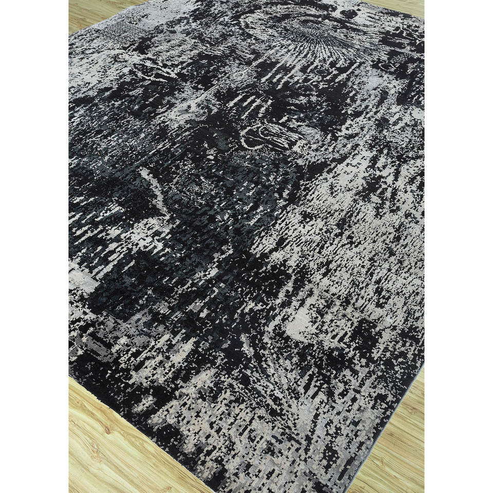 พรมขนสัตว์และไหมไผ่ถักมือสีเทาและดำ ลายแบบนามธรรม รุ่น Srb(703) สำหรับใช้ในบ้าน