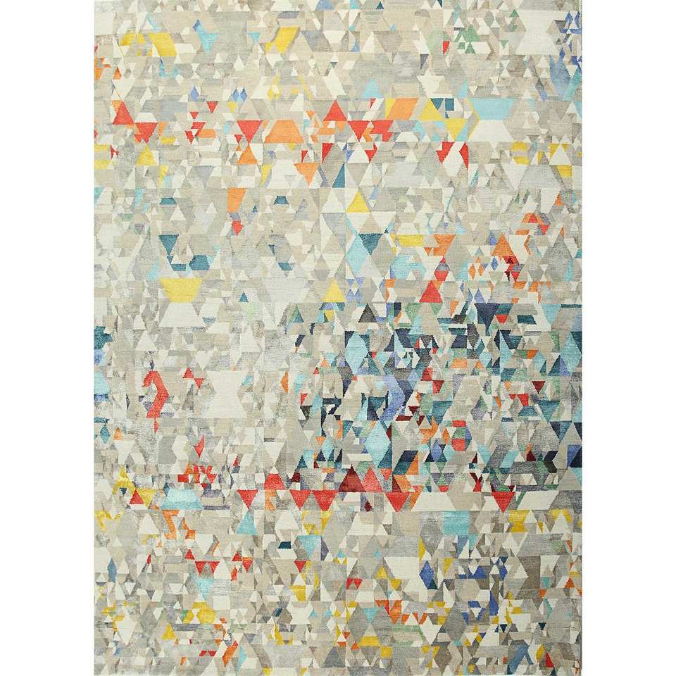 พรมไหมไผ่ผสมขนสัตว์ถักมือลายเรขาคณิต รุ่น Kavi's Chaos Theory สำหรับบ้าน ขนาด 9x12 ฟุต รูปทรงสี่เหลี่ยมผืนผ้า หนา 10 มม. เหมาะสำหรับห้องนอนและทางเดิน รุ่น Esk-461