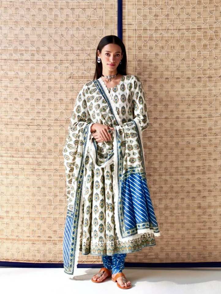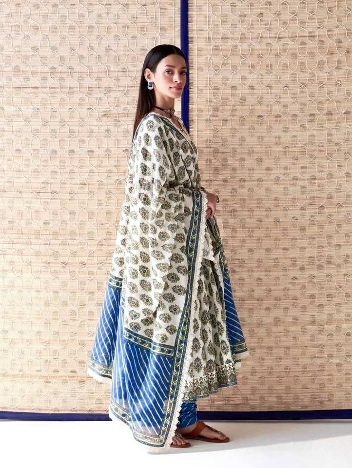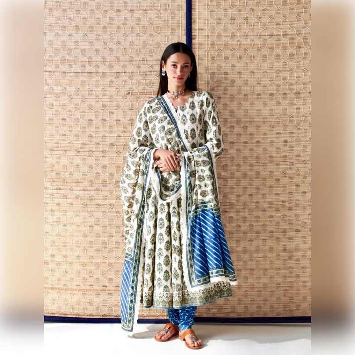 ชุดเดรสอนาร์กาลีแบบสามชิ้น คาวยา ดีไซเนอร์ ผ้าแคมบริกแท้ พิมพ์ลายดิจิทัล พร้อมผ้าคลุมไหล่และกางเกง