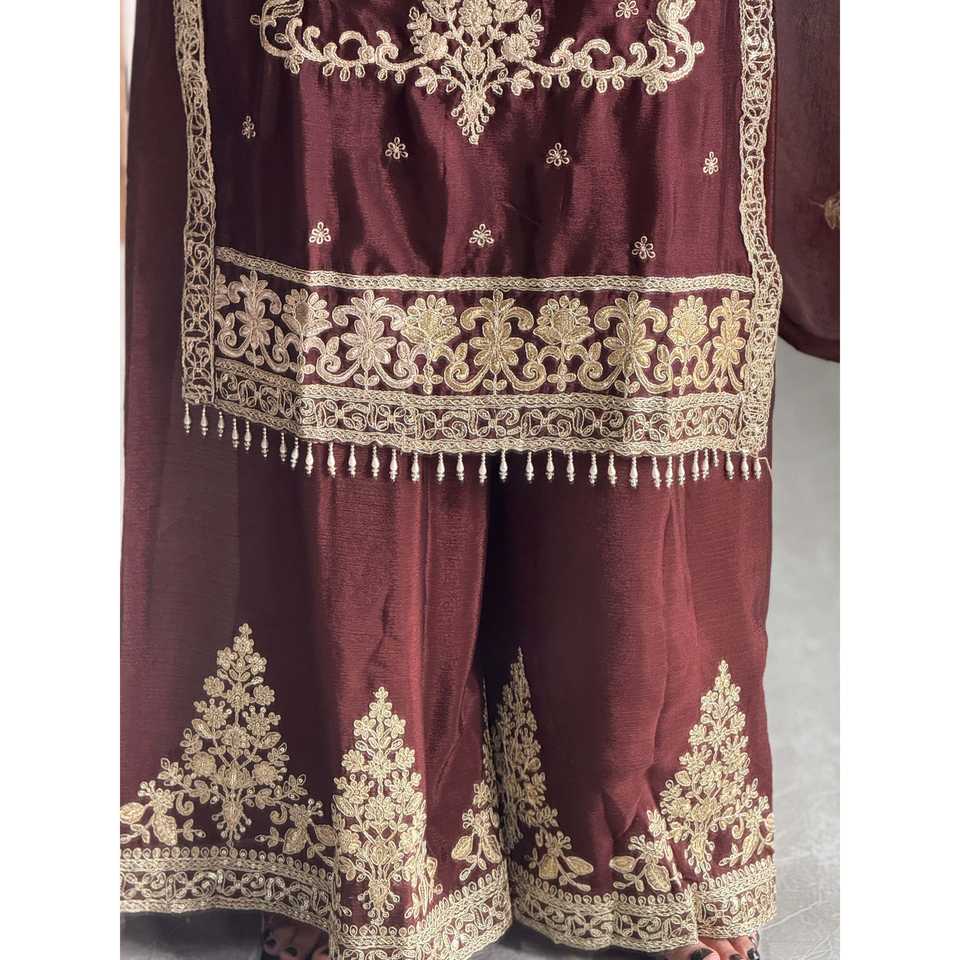 Kavya Fab ชุดปาร์ตี้สีกาแฟสำหรับผู้หญิง, ชุดเสื้อผ้าใส่ด้านบนล่างและสวยงามขนาด M