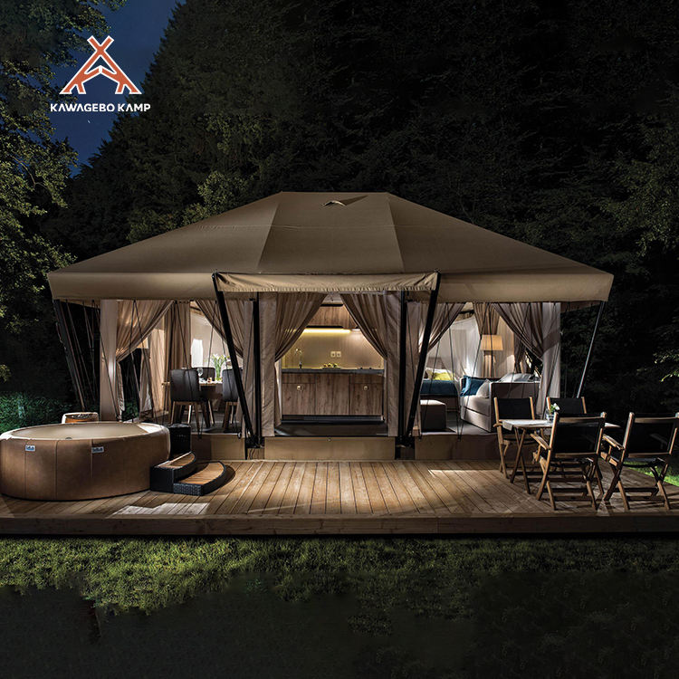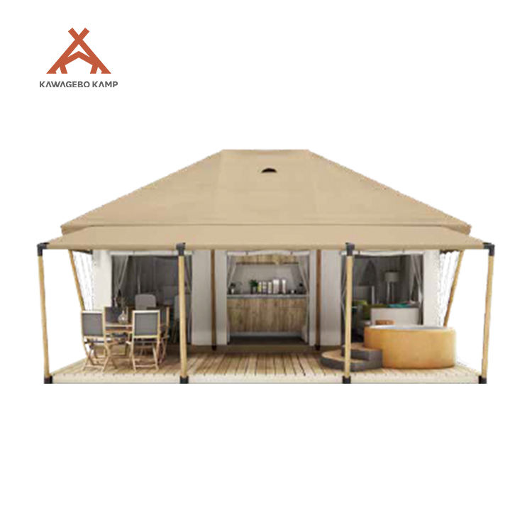 เต็นท์รีสอร์ทหรูหรา Kawagebo Kamp (KK) ขนาด 20' x 26' รุ่น PVDF สำหรับแกลมปิ้ง ซาฟารี พร้อมห้องน้ำในตัว