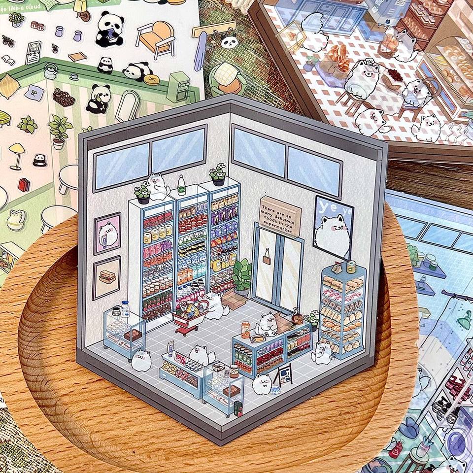 สติกเกอร์ลายบ้าน 3 มิติ น่ารัก ลายแมวน้อย สำหรับตกแต่งสมุดภาพ อุปกรณ์เครื่องเขียน งานฝีมือ DIY อัลบั้ม
