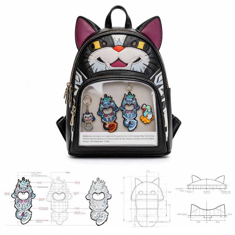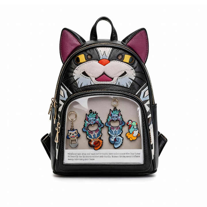 กระเป๋าเป้ใสลายแมวน่ารักสำหรับนักสะสมพินอนิเมะและคนรักแมว