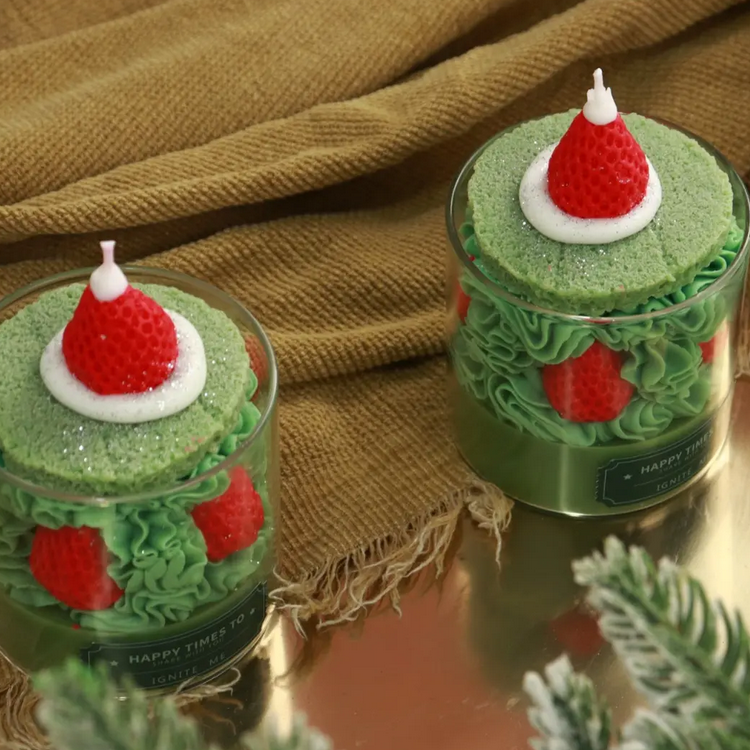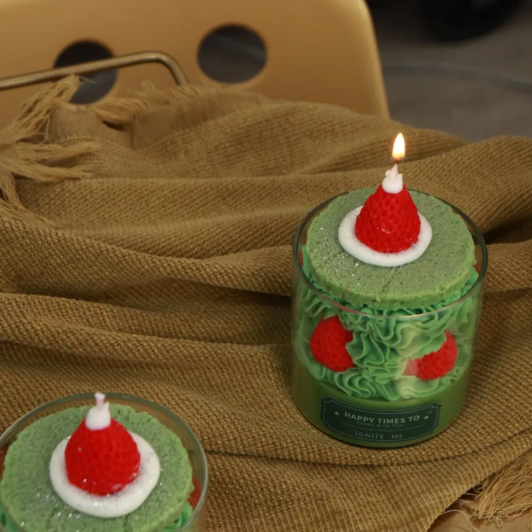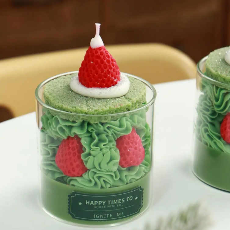 เทียนหอมกลิ่นสตรอเบอร์รี่มัทฉะทำมือน่ารักในขวดแก้วปรับแต่งได้สำหรับบาร์วันหยุดของตกแต่งเทศกาลอีสเตอร์สำหรับเทศกาลดิวาลิ