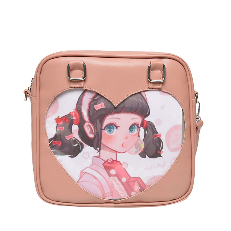 Kawaii Lolita JK กระเป๋า Crossbody สไตล์ญี่ปุ่นสำหรับกระเป๋า ITA ที่มีรูปหัวใจใสหน้าต่างกันน้ำ PU itabag