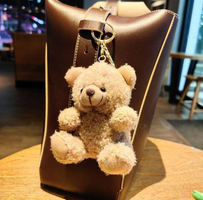 พวงกุญแจตุ๊กตาผ้าคอตตอนตุ๊กตาหมีขนาดเล็กน่ารักจี้รถยัดไส้สัตว์กำหนดเองได้