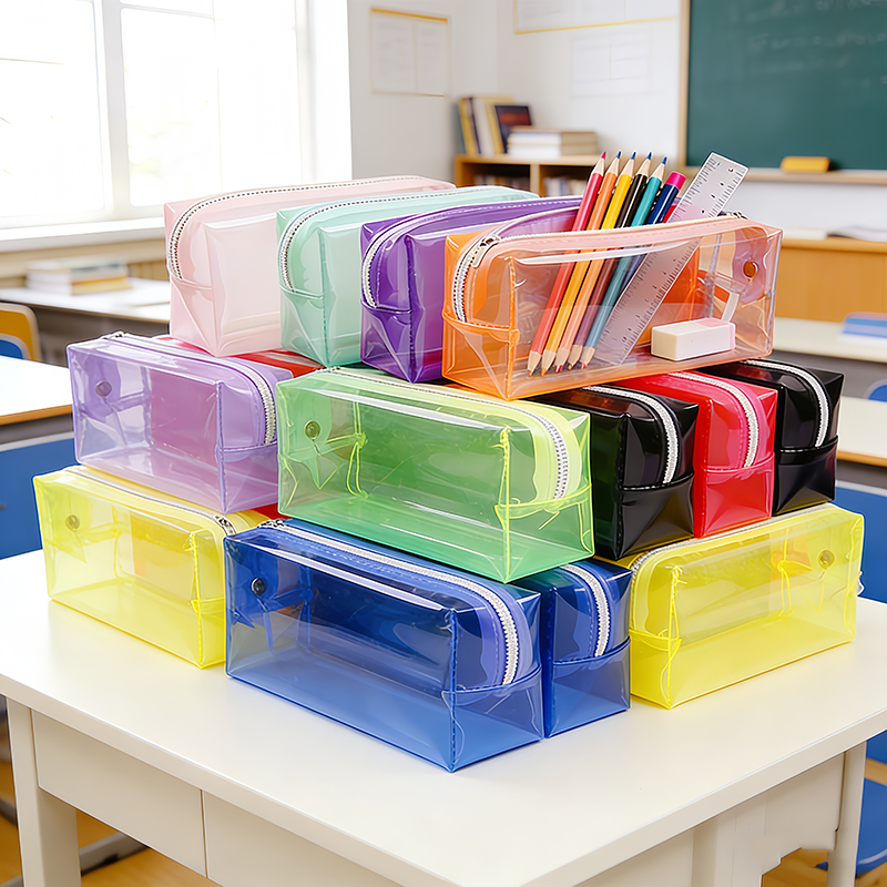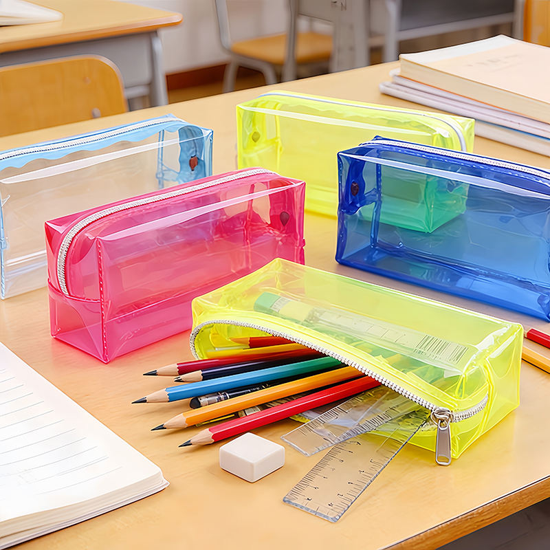 Kawaii School Stationery Storage Pouch Large Capacity Clear Kids Pen Case Custom PVC Plastic Pencil Case for School Boys Girls