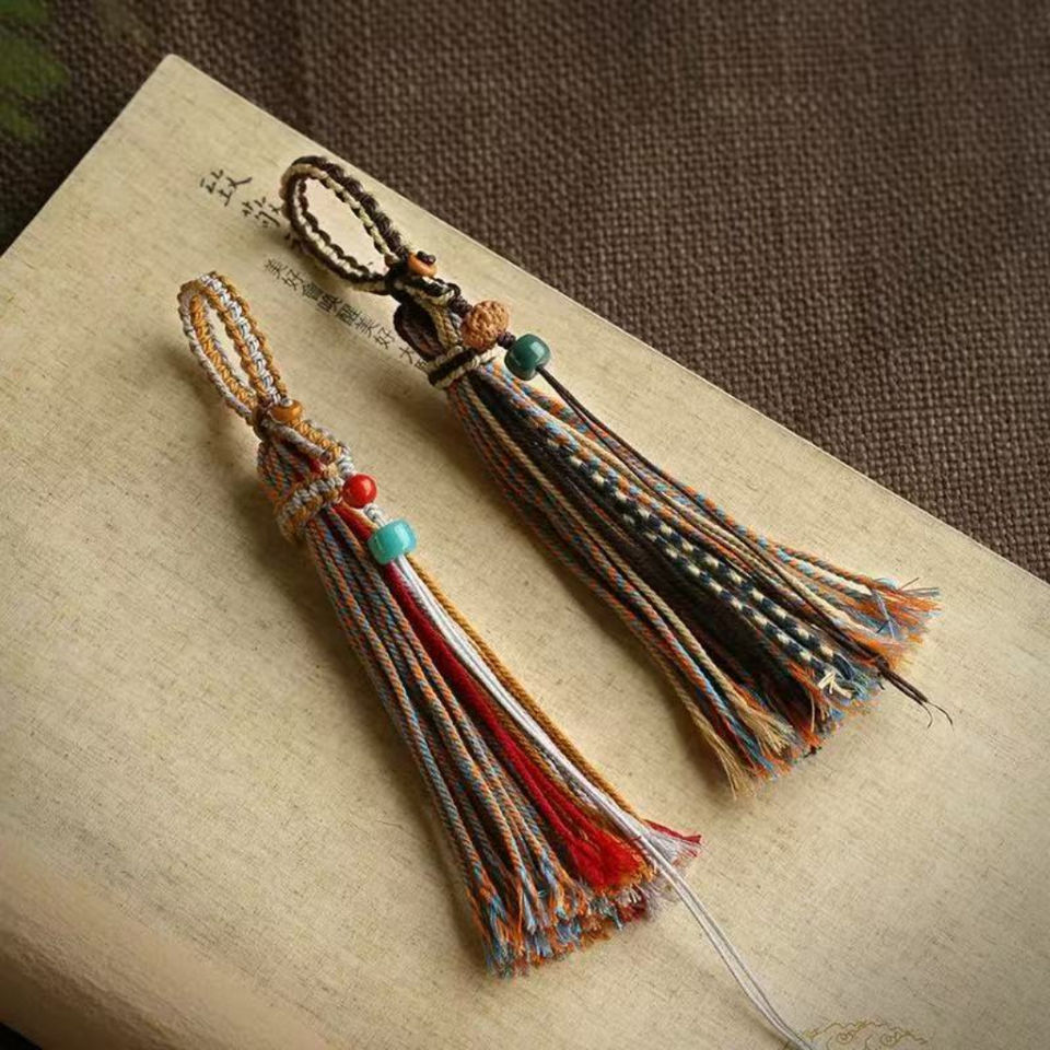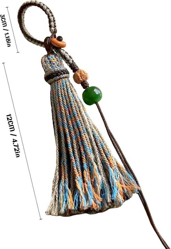 พวงกุญแจดีไซน์วินเทจสไตล์โบโฮประดับพู่ถักมือ เชือกถักสีขาว หยกขาว จี้ดินแดง สำหรับตกแต่งกระเป๋าถือผู้หญิง