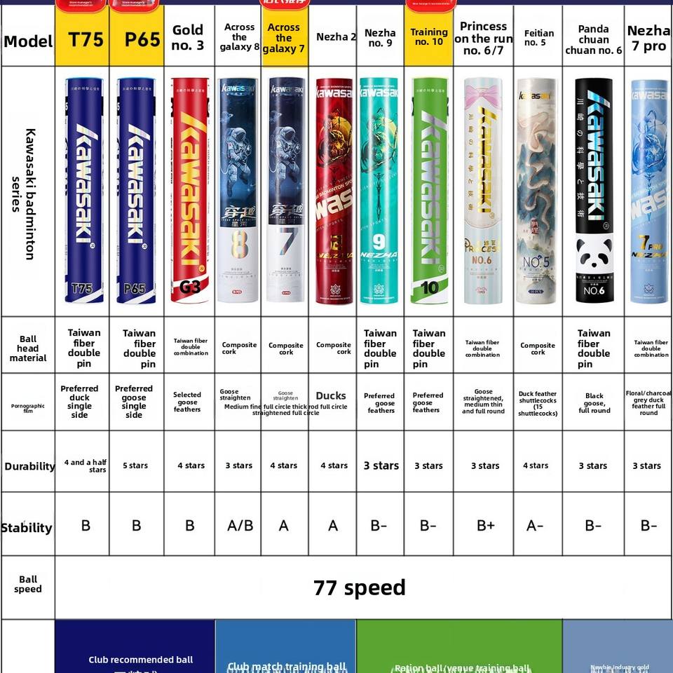 ลูกแบดมินตันคาวาซากิ T75 ขนเป็ดผสมขนห่าน แกนโฟม สำหรับการฝึกซ้อมและการแข่งขันระดับมืออาชีพ บินเสถียร ทนทาน 6 ลูก