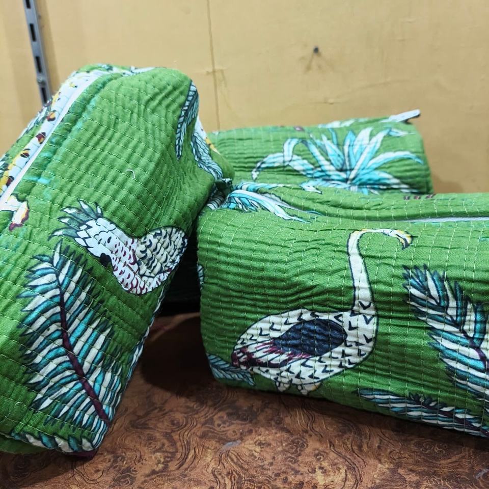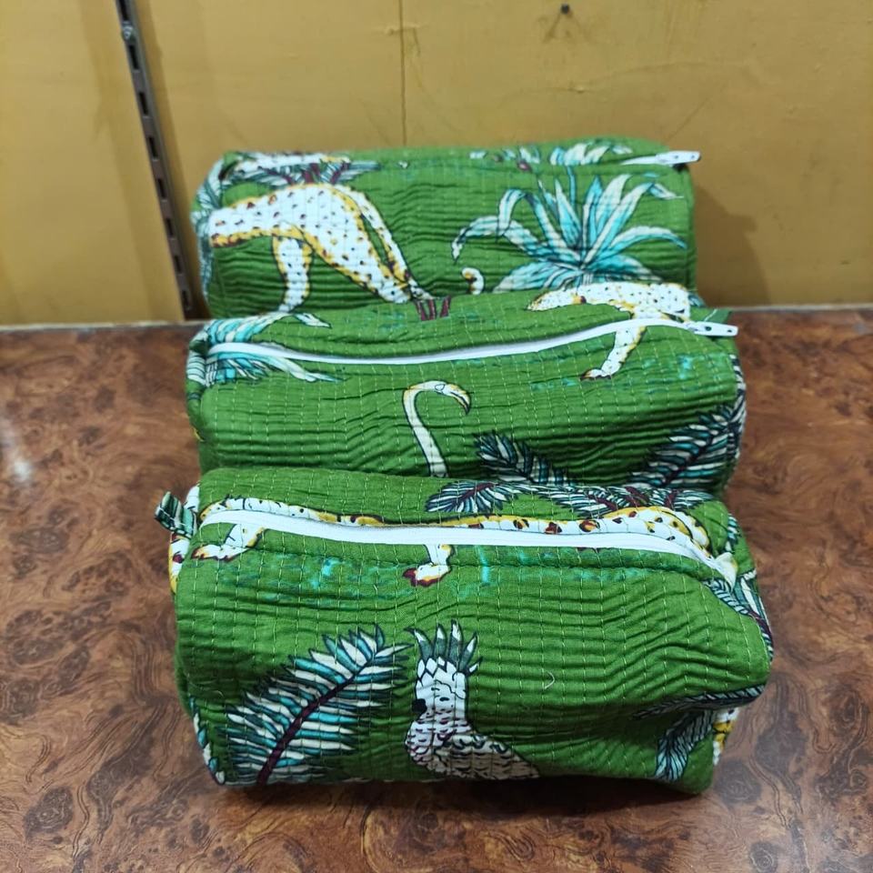 ชุดเครื่องสำอางกันน้ำขนาดใหญ่ทรงสี่เหลี่ยมผืนผ้าลายดอกไม้แบบควิลท์ 3 ชิ้น สำหรับเด็กผู้หญิง ยี่ห้อ Kaya Loom ผลิตจากผ้าฝ้ายรักษ์โลก ปิดด้วยซิป