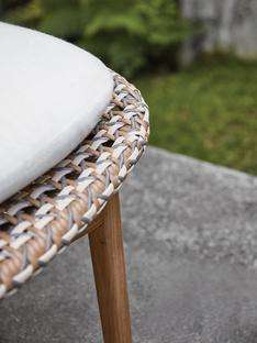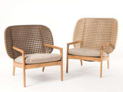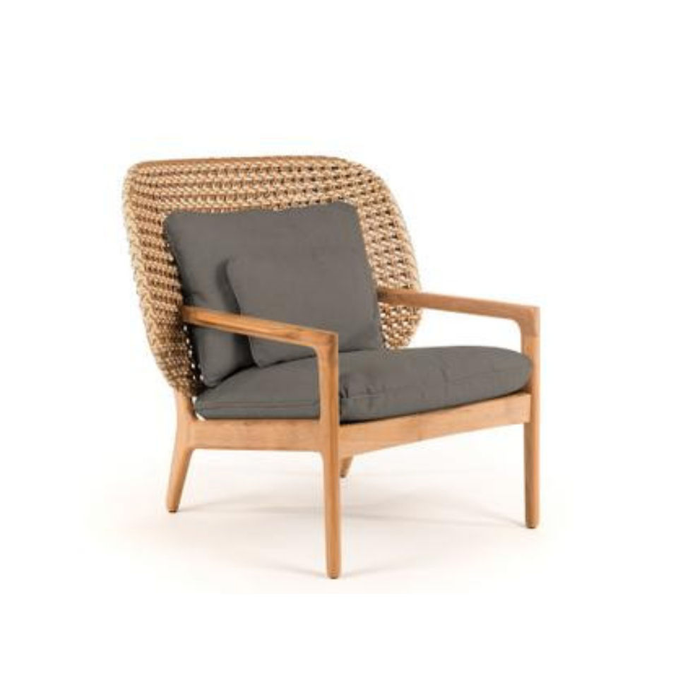 เก้าอี้เลานจ์ที่ทันสมัยของ kayla ทำจากโครงไม้สักแข็งและหวายหวายสังเคราะห์ที่มีการบุนุ่มและเสร็จสิ้นตามธรรมชาติ