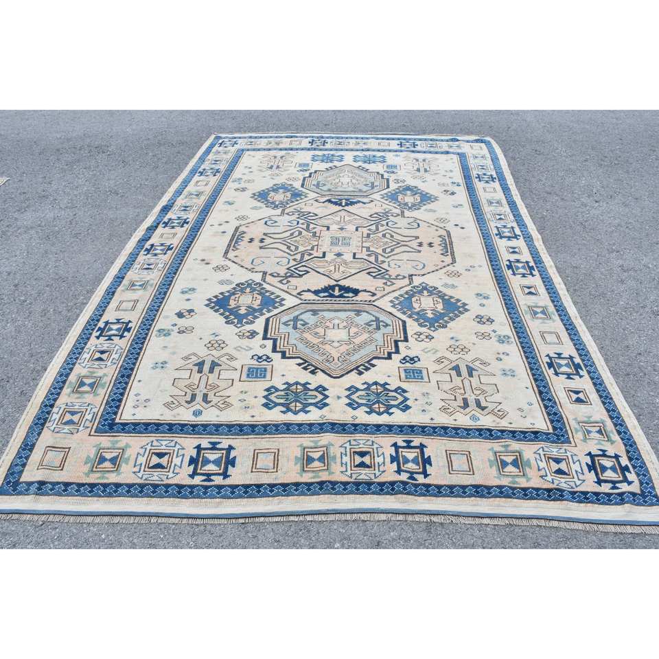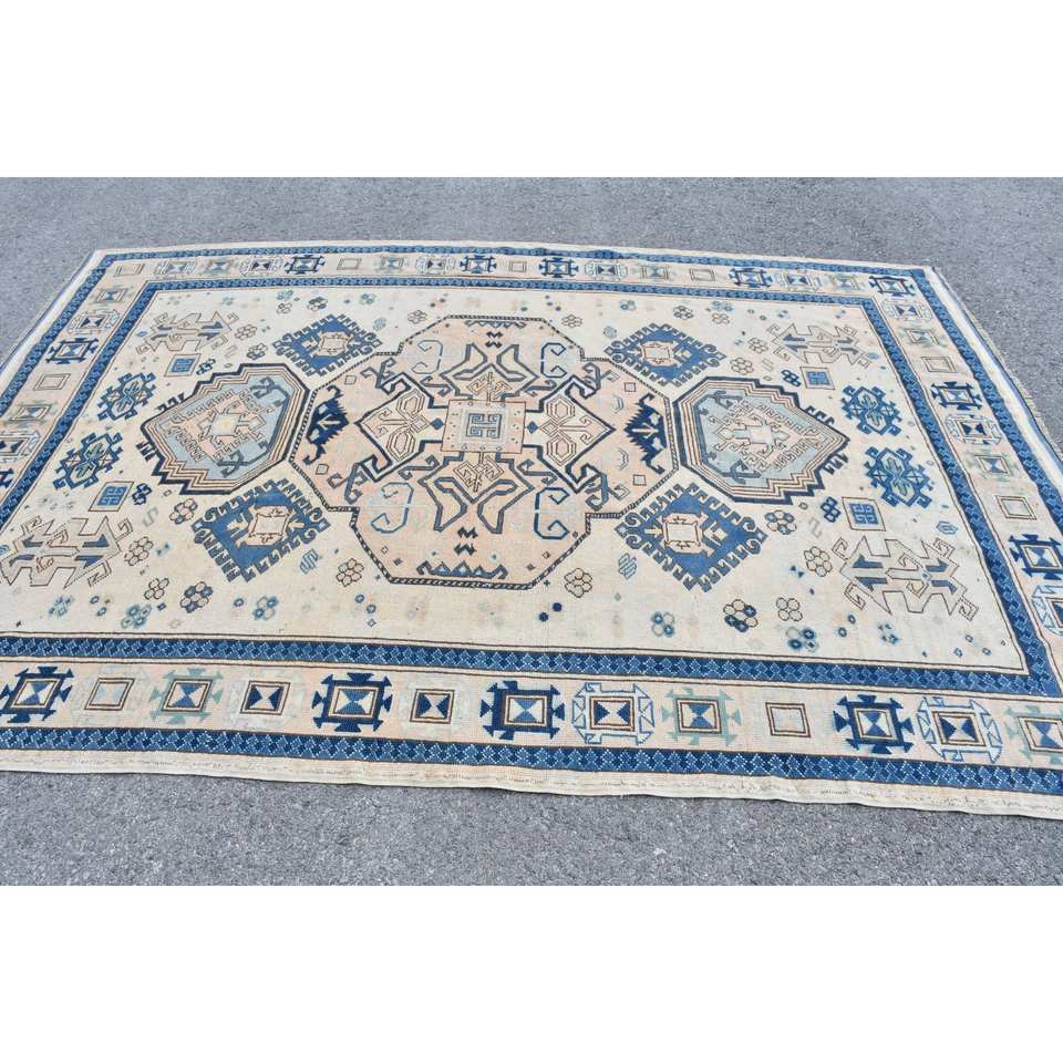 Kazak พรมขนสัตว์สีเบจสีฟ้า6.6x9.4ฟุตตุรกีพรมทอห้องนั่งเล่นรูปแบบการเย็บปะติดปะต่อกันสำหรับวัยรุ่นสี่เหลี่ยมผืนผ้าห้องโถง