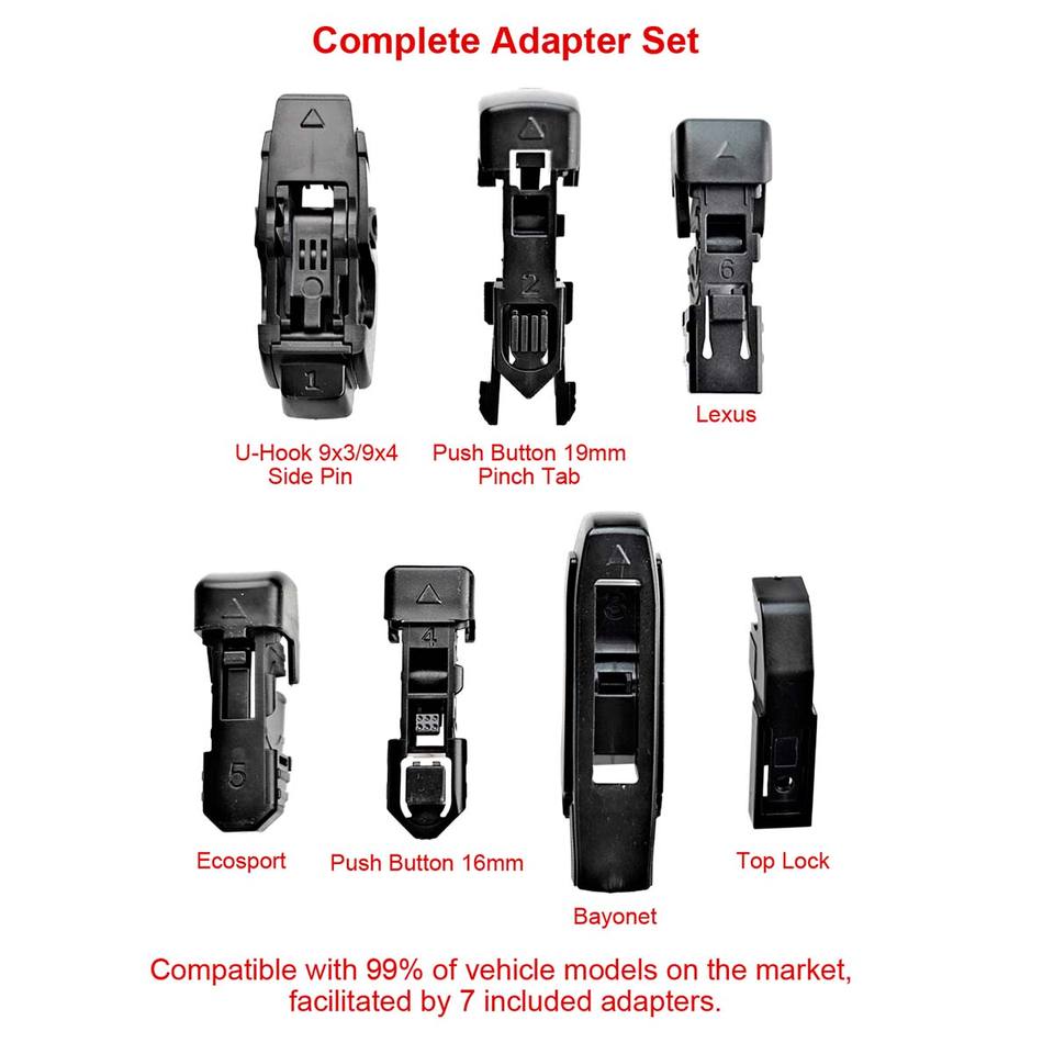 ใบปัดน้ำฝนแบบไร้โครง Kction Wholesale Universal ยางธรรมชาติ 7 อะแดปเตอร์ ใช้ได้กับรถยนต์หลายรุ่น
