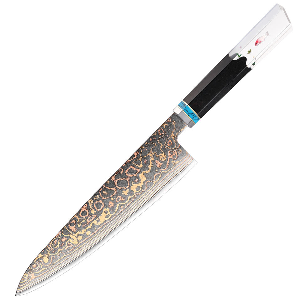Blade material:Japan Aichi 33Layers Copper Brass Damascus Steel AUS10