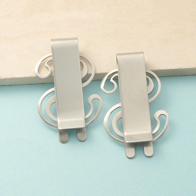 เก็บเงินสดของคุณให้ปลอดภัยชิ้นส่วนโลหะปั๊มโลหะสแตนเลสสีเงินเงาของธนาคารคลิปเงินของที่ระลึก