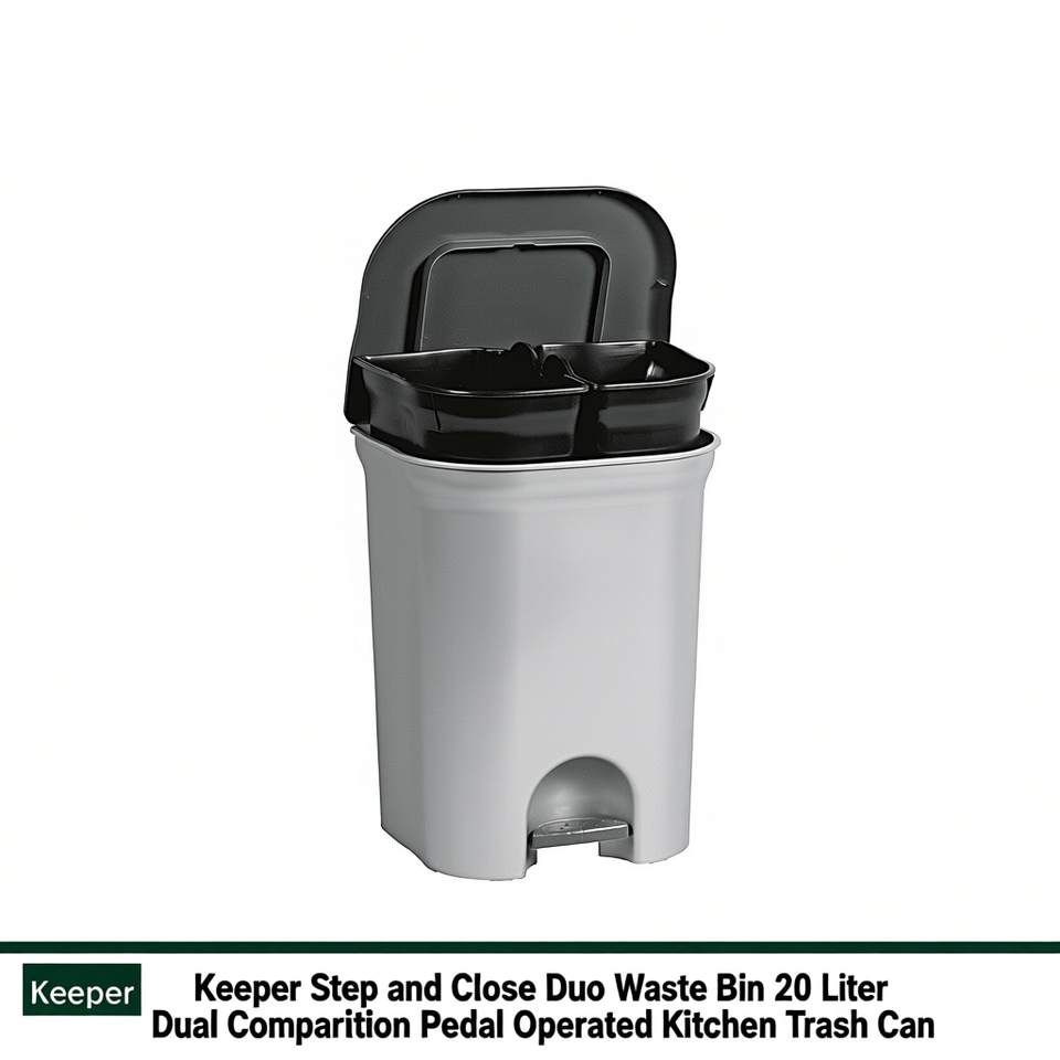ถังขยะคู่แบบเหยียบปิดอัตโนมัติ Keeper Step And Close Duo ขนาด 20 ลิตร สำหรับห้องครัว