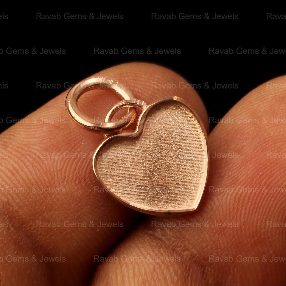 เครื่องประดับที่เป็นของที่ระลึกจี้925ชุบสีโรสโกลด์12มม. รูปหัวใจจี้กึ่งเปล่าสำหรับการตั้งค่าและส่วนประกอบ