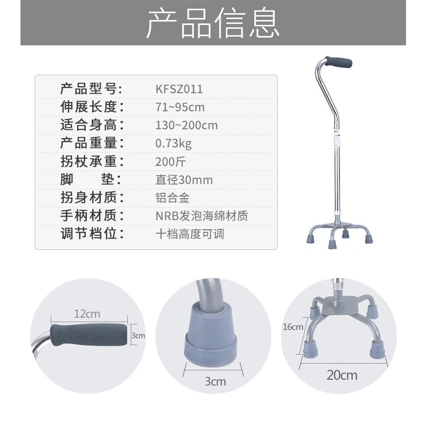 ไม้เท้าสี่ขาปรับระดับความสูงได้ 31.5 นิ้ว ทำจากอลูมิเนียมอัลลอยด์ น้ำหนักเบา พร้อมด้ามจับโฟม สำหรับผู้สูงอายุ
