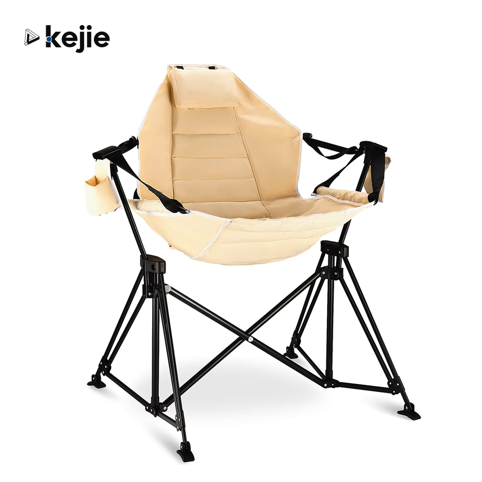 เก้าอี้โยกพับได้กลางแจ้ง Kejie รุ่นโมเดิร์น นั่งสบาย ใช้ได้ทั่วไป ผลิตจากผ้าหุ้มโครงเหล็กแข็งแรงทนทาน