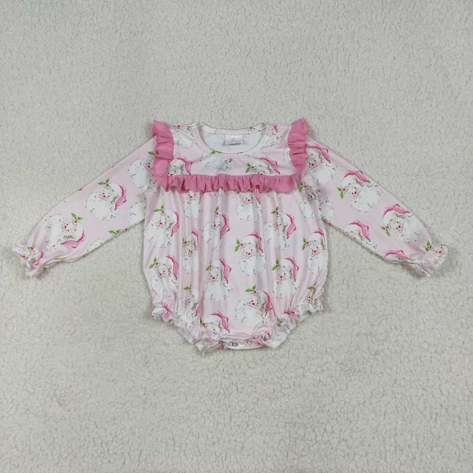 Keli LR2208หมีสีชมพูคุณภาพสูงลายซานตาคลอสสีชมพูชุดหมีแขนยาวลายลูกไม้น่ารักสำหรับเด็กผู้หญิงชุดฤดูใบไม้ผลิ