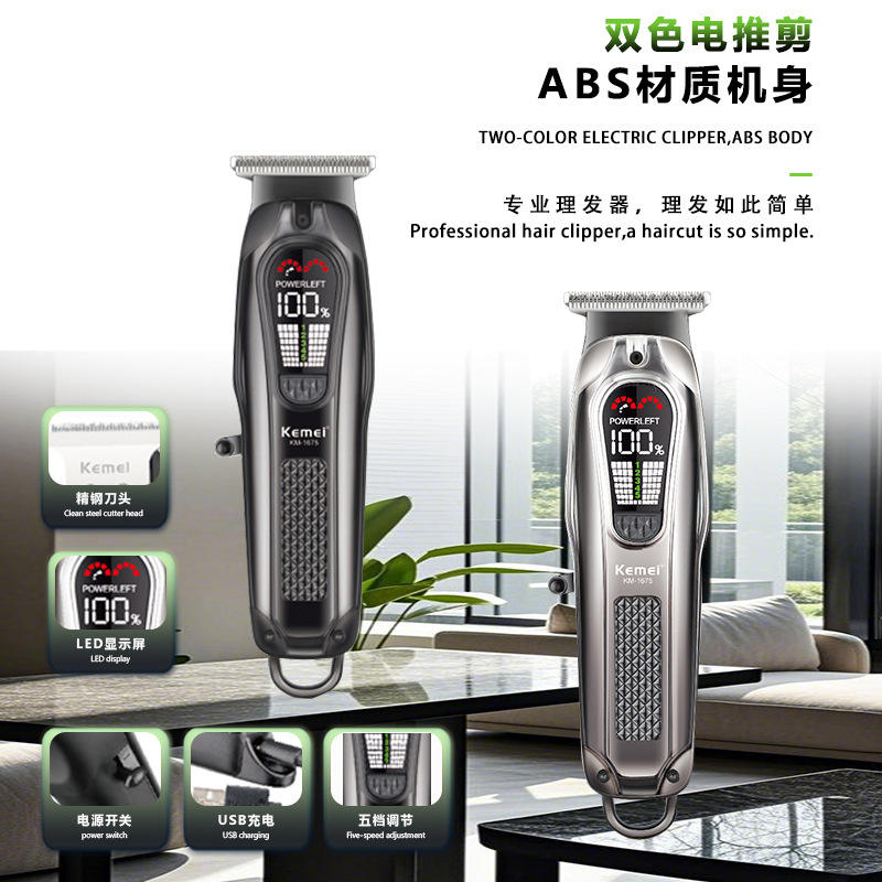 เครื่องตัดผมไฟฟ้าเคเมอิ 16 ซม. ตัวเครื่องโลหะแบบชาร์จไฟได้พร้อมจอแสดงผล LED สำหรับผู้ชายและสัตว์เลี้ยง