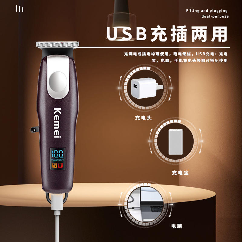 เครื่องตัดผมไฟฟ้าเคเมอิ KM-PG233 จอแสดงผล LCD กันน้ำ ชาร์จ USB สำหรับใช้ในบ้าน