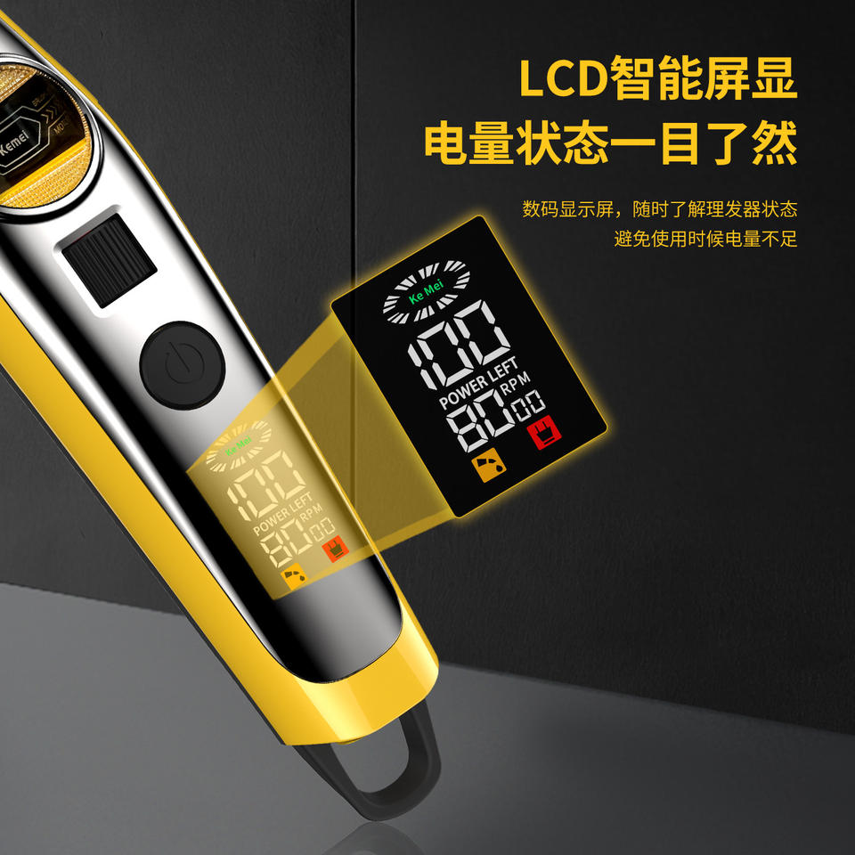 เครื่องตัดผมไฟฟ้า Kemei รุ่น KM1863 มอเตอร์ไร้แปรงถ่าน จอ LCD แสดงผล 6 ระดับความเร็ว เครื่องตัดผมระดับมืออาชีพ