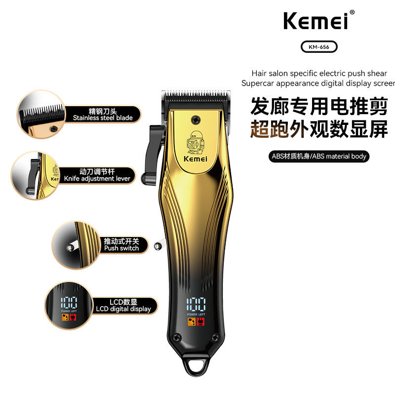 Kemei Electric Hair Clippers 19cm Length Rechargeable LCD Display Professional Haircut Tool For Home Use