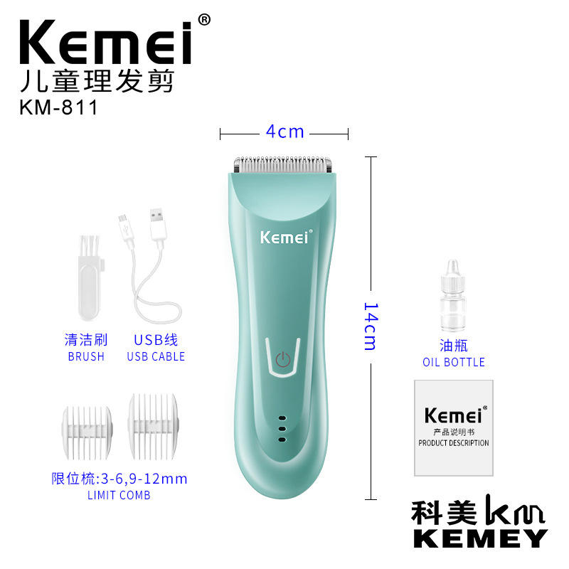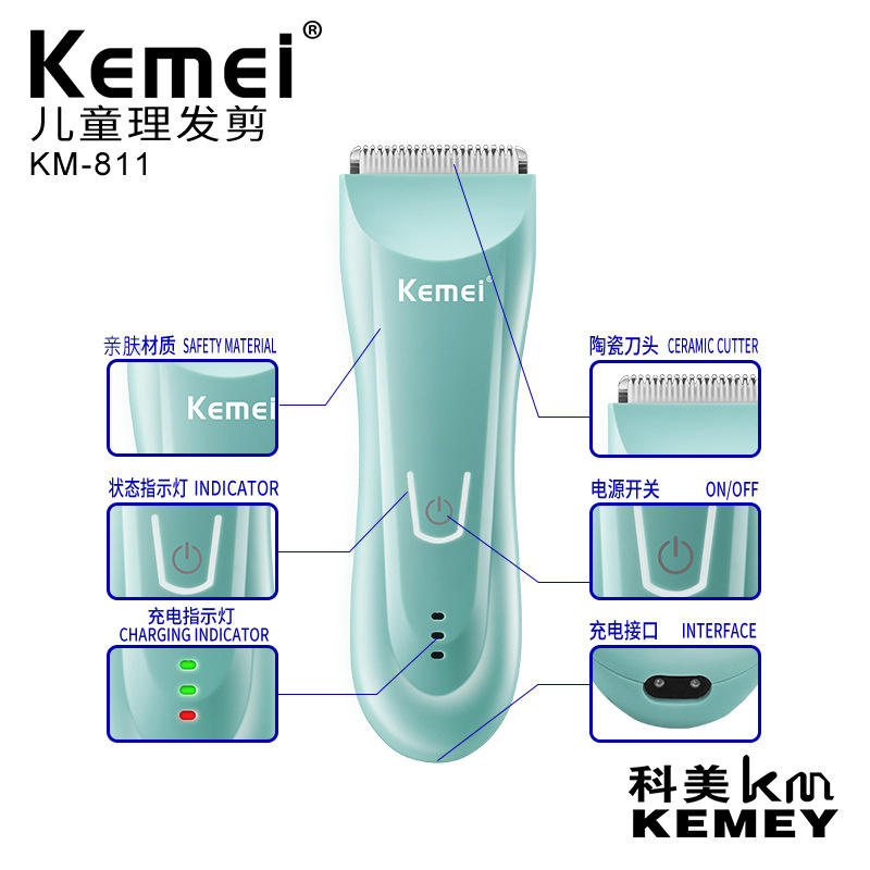 เครื่องตัดผมไฟฟ้า Kemei รุ่น KM-811 ใบมีดเซรามิกปลอดภัย ชาร์จผ่าน USB สำหรับใช้ในบ้าน เครื่องตัดแต่งผมเด็ก