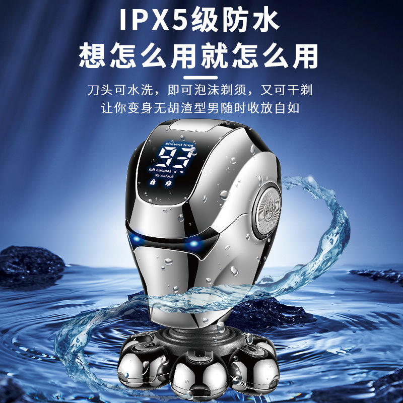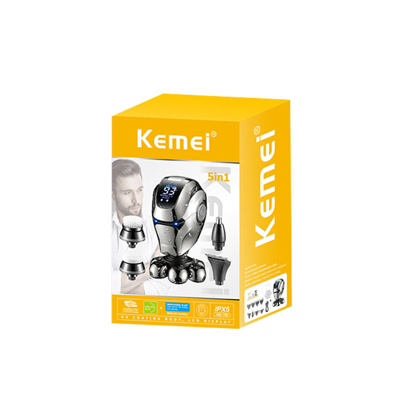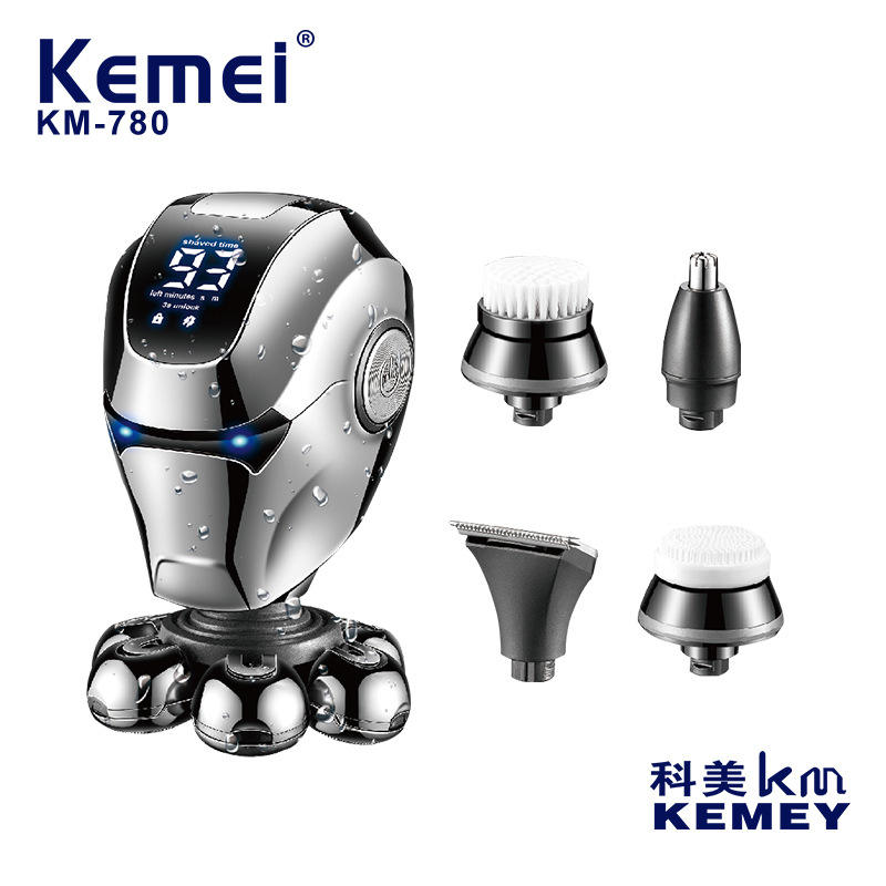 เครื่องโกนหนวดไฟฟ้าเคเมอิ 5 ใบมีด ตัวเครื่องโลหะ ชาร์จผ่าน USB กันน้ำ IPX5 สำหรับผู้ชาย