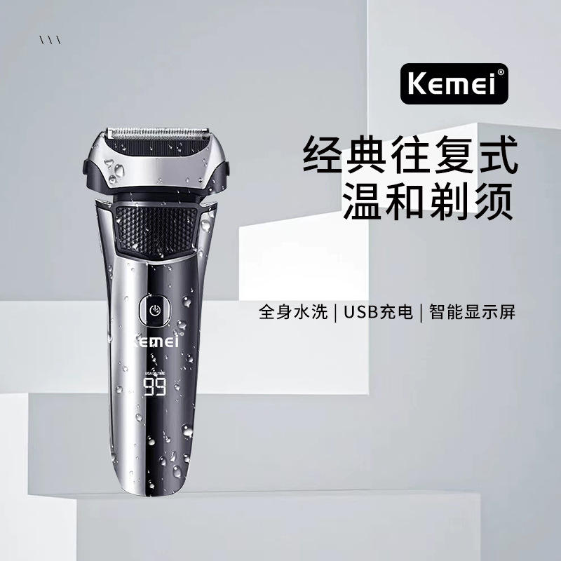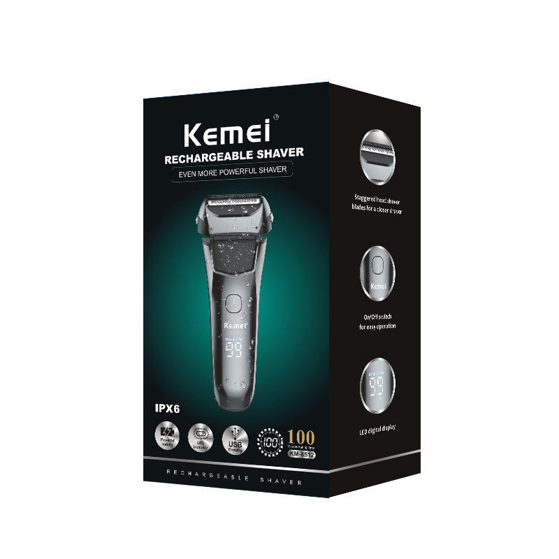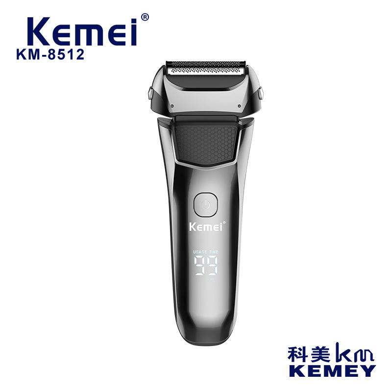 เครื่องโกนหนวดไฟฟ้า Kemei แบบหัวคู่ลอยตัว ระบบใบมีดแบบลูกสูบ กันน้ำระดับ IPX7 ชาร์จแบบ Type C สำหรับผู้ชาย รุ่น KM 8512