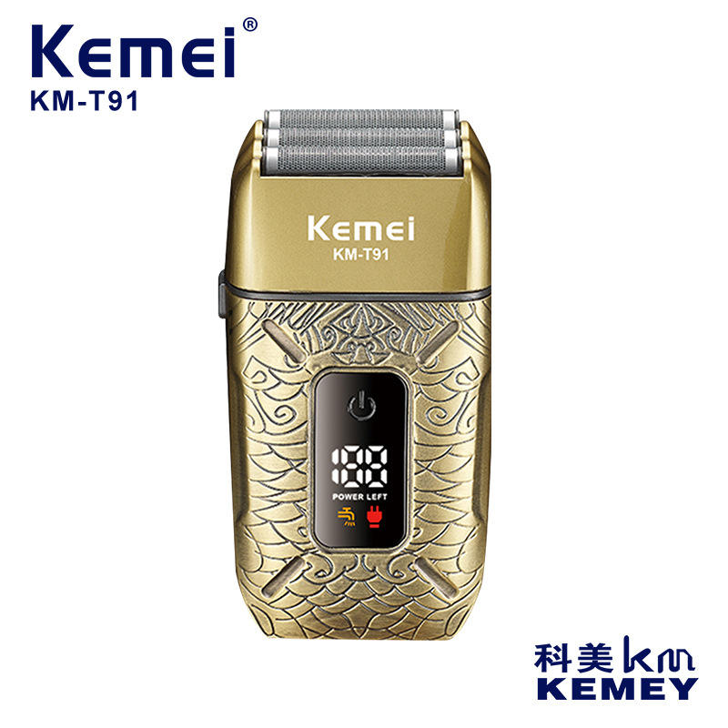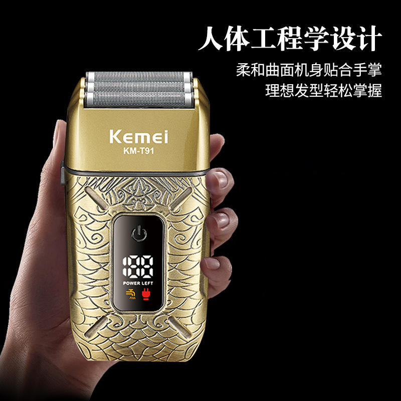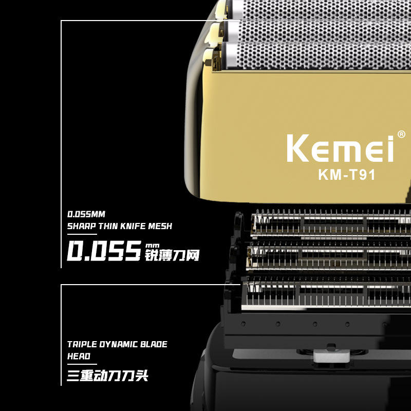 Kemei เครื่องโกนหนวดไฟฟ้าสำหรับผู้ชาย, เครื่องโกนหนวดโลหะสามใบมีดกันน้ำ IPX6ชาร์จได้เครื่องเล็มเครา T91ได้