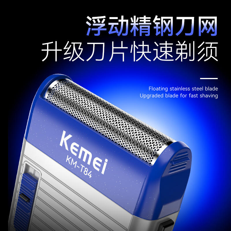 เครื่องโกนหนวดไฟฟ้าเคเมอิ KM-T84 มินิแบบพกพาแบบชาร์จไฟได้สำหรับผู้ชายสีน้ำเงินและสีแดง